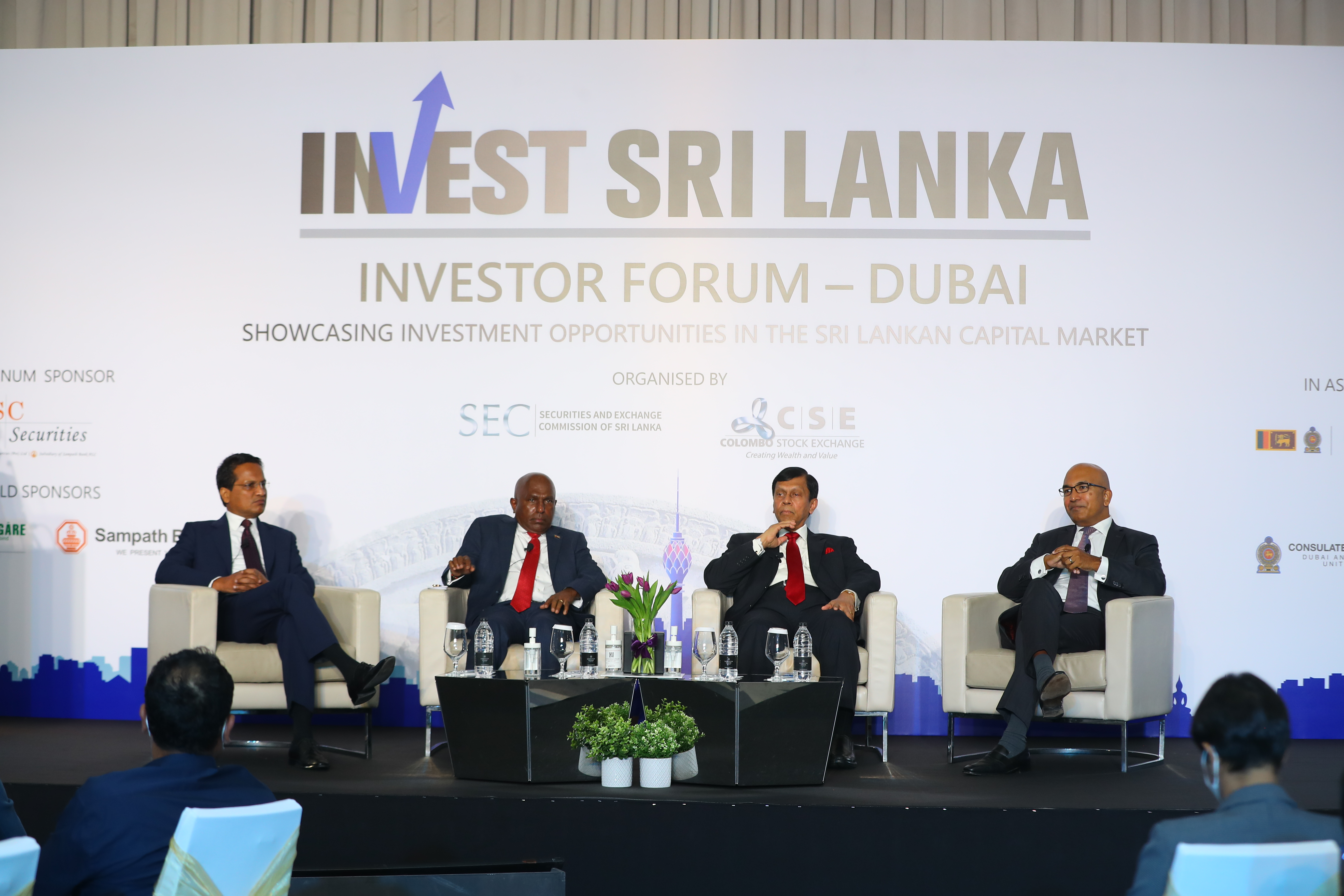 The ‘Invest Sri Lanka’ Investor Forum organized by the Securities and Exchange Commission of Sri Lanka (SEC), Colombo Stock Exchange (CSE), in association with the Embassy of Sri Lanka in UAE and the Consulate General of Sri Lanka to Dubai and Northern Emirates was recently held at the Sheraton Grand Hotel Dubai. The forum made a strong case for investment flows into Sri Lanka. The event drew a strong turnout and a full house of leading Dubai–based Sri Lankans across multiple industries and was graced by Hon. Ajith Nivard Cabraal as the keynote speaker.